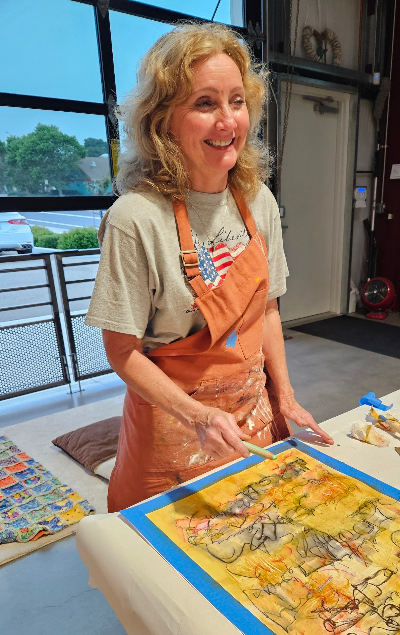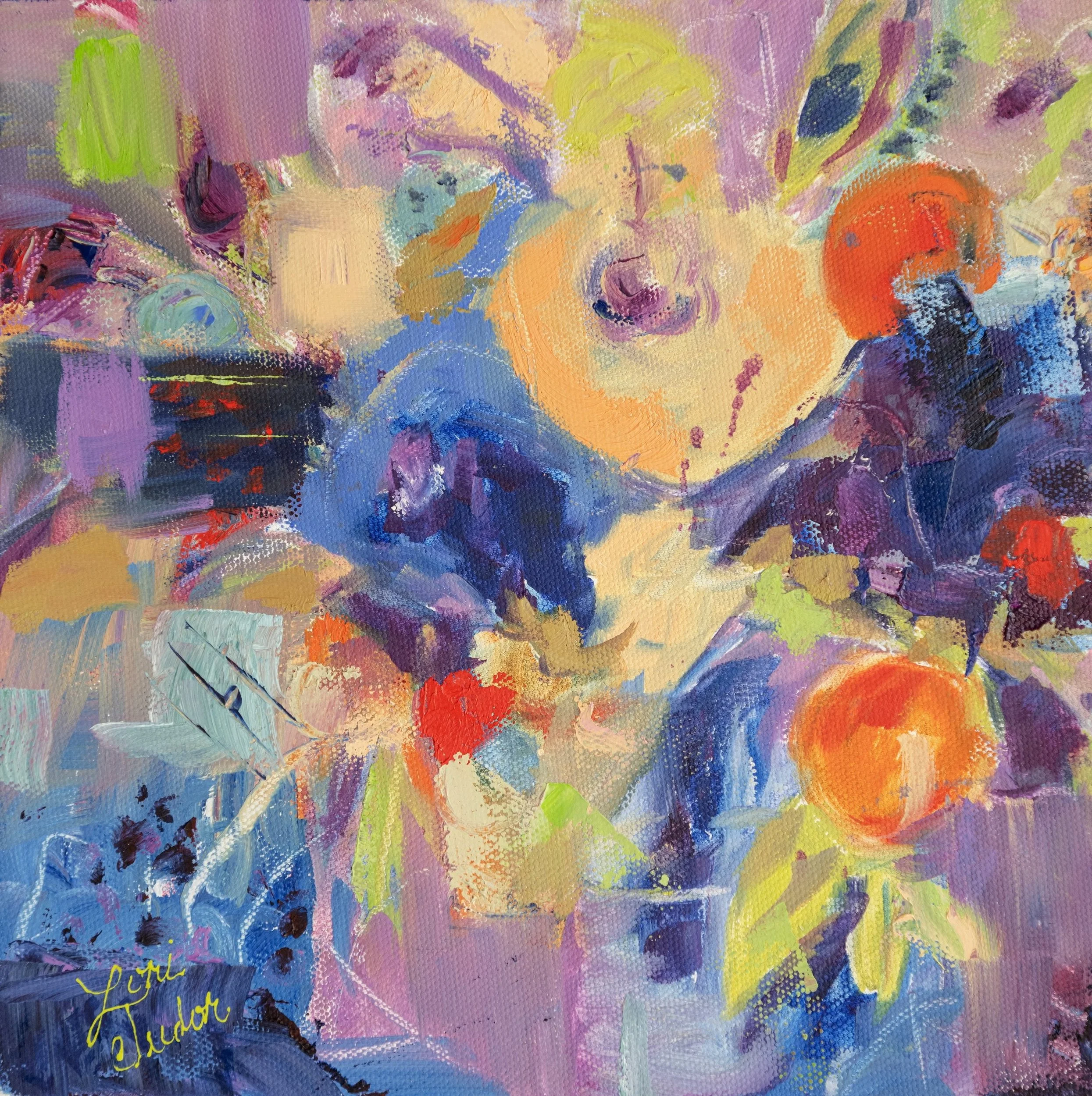 My style hasn’t changed much from those kinder days. I paint expressively and intuitively while building layers of bold strokes and daring patterns that are fun and loose. And…I don’t do grapes. I do however love painting abstracts, flowers, angels, and old churches. And always outside the lines!